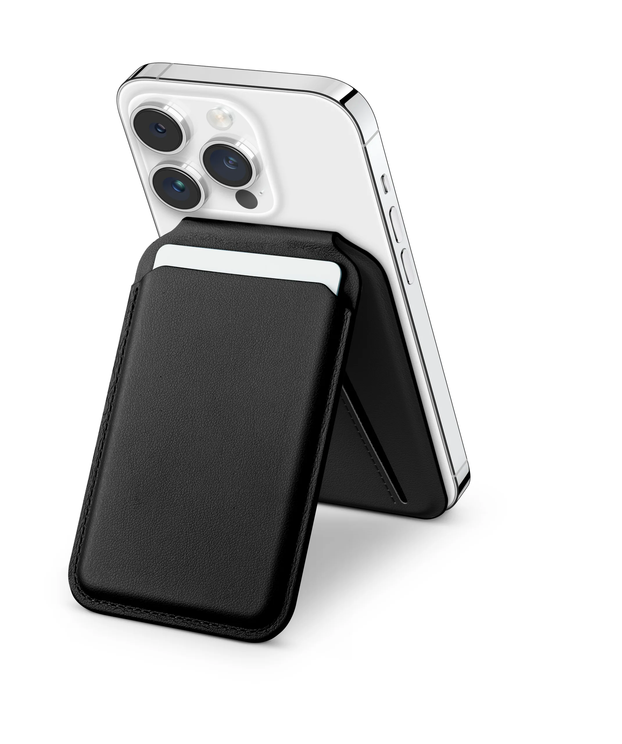 普通のカードウォレットと決定的に違うのが、このスタンド機能の優秀さです!ヒンジがしっかりしているので、絶妙な角度でピタッと止まります。縦置きにしてSNSをチェックするのはもちろん、横置きにして動画を楽しむのもお手の物。さらには、iPhoneを浮かせるような「フローティングモード」にも対応しているので、オンライン会議やFaceTimeの時もカメラの角度をバッチリ調整できます。これ一つでデスクがコックピットに早変わり!